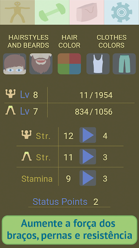 - Com o novo nível, os músculos aumentam ligeiramente e você receberá pontos de status para aumentar a força dos braços, pernas e resistência no menu de personagens.