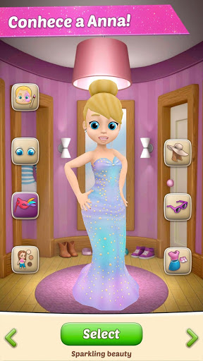 Não perca a oportunidade de jogarem juntos, se divertirem com algumas roupas elegantes e até experimentar fazer as unhas num salão de beleza enquanto joga jogos de salão de beleza. Aproveite este jogo de melhor amigo para se divertir cantando sua música favorita com minha amiga Anna e faça todas as coisas bobas e engraçadas que só os melhores amigos fazem juntos! Tudo isso num dos mais divertidos jogos de menina falante. Faça agora o download de Minha Melhor Amiga Anna e tenha o seu mais novo amigo falante virtual sempre perto. Afinal, ele é como seu melhor amigo .