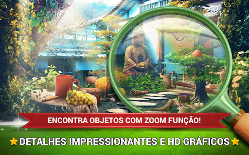 Zen jardins são obras de arte que expressam a beleza da natureza! Não desperdice o seu tempo e abre a porta para o paraíso! Apresse-se para baixar os melhores jogos de procurar objetos escondidos livre e desfrute das belas fotos de jardins japoneses! Objetos Misteriosos Jardim Zen e tudo o que você precisa para começar uma aventura inesquecível e ter entretenimento como nunca antes! Se você é um fã de jogos de aprendizagem, jogos de lógica, jogos mentais e jogos de mistério, esses jogos divertidos são para você! Este jardim paraiso neutraliza os maus pensamentos, emoções e atitudes negativas e cria uma atmosfera de tranquilidade e serenidade. Se você quer passar tempo de qualidade, baixe o nosso novo jogo de objetos escondidos em português grátis e comece a procurar coisas escondidas e os objetos perdidos nas fotos preciosas!