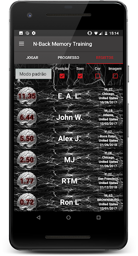 ) no passado você precisa lembrar. Por padrão, você começará em 2-back, então pressione o botão de partida se o item atual corresponder ao item que ocorreu 2 tentativas no passado. Para uma demonstração simples de como jogar 2-back único, veja este vídeo: https://www.youtube.com/watch?v=qSPOjA2rR0M .
