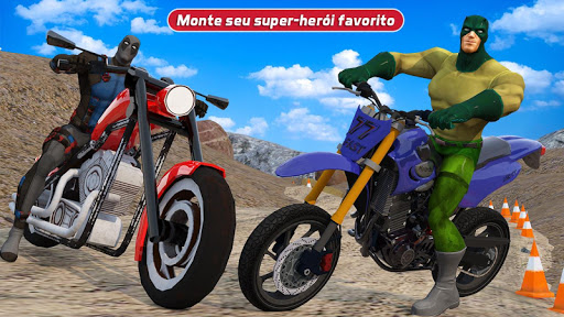 Você tem coragem de andar de bicicleta no ambiente off-road? Se sim, a instalação de bicicletas de super-heróis Off-Road acrobacias jogo de corrida de aventura agora, neste você é uma moto e vai experimentar aventura de equitação emocionante off-road. Se você está entediado de jogar jogos de corrida típicos, este jogo de super-heróis tem muitos recursos interessantes que manterão seus interesses até o fim das corridas de moto super-heróicas.