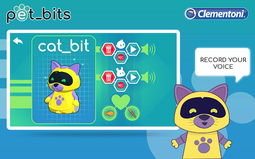 Se tiveres um pet_bit, basta enquadrar o código QR na sua base para desbloquear as atividades com os seus conteúdos personalizados. Envia ao robô alimentos e presentes virtuais conquistados durante o jogo, dá-lhe um nome e ensina-o a repetir o teu.