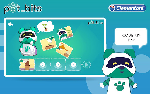Diverte-te com as atividades de coding: completa os percursos ajudando os pet_bits a alcançar os prémios e, se tiveres um pet_bit, ensina-o a realizar as atividades do dia a dia, colocando as ações na ordem correta.