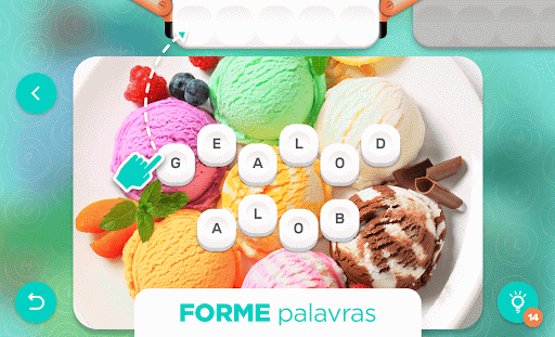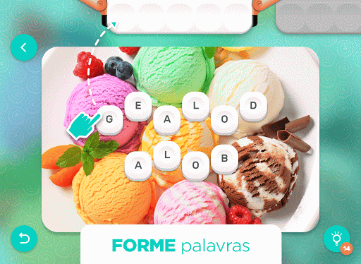 Conforme você progride através dos níveis, você terá mais e mais palavras para encontrar para cada imagem, ou seja, algumas vão estar cobertas por outras. Portanto, você vai ter que encontrar as primeiras palavras para revelar a imagem e todas as letras pouco a pouco ... Mas cuidado, apenas as letras em cima podem ser usadas, por isso depende de você escolher as certas para desbloquear os outros.