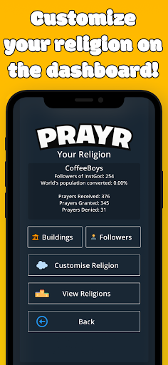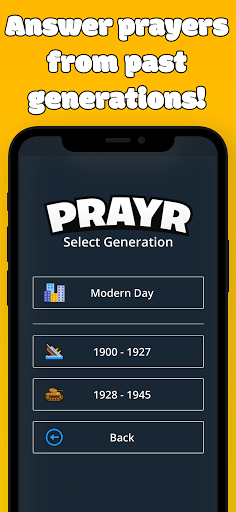 Situado no dia moderno, prayr coloca o jogador nos sapatos de Deus, onde você recebe orações recebidas de pessoas geradas processualmente.Sua bússola moral será testada à medida que você aceita ou rejeite as orações cobrindo toda uma gama de problemas em todos os tempos e limitações.