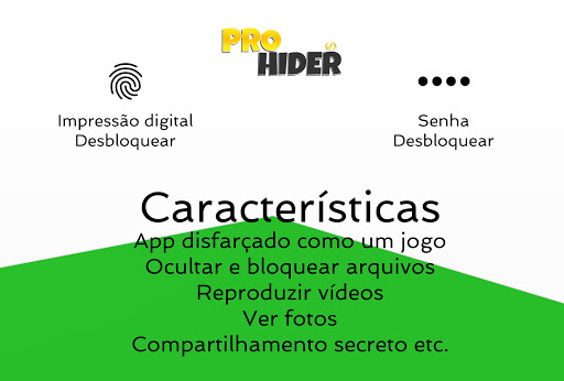 Pro Hider é um cofre para esconder suas fotos e vídeos privados, com senha e fechamento de impressão digital. Ele mantém suas fotos e vídeos seguros e os oculta da sua Galeria.