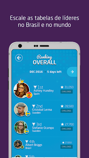 Veja onde você está tanto a nível nacional como global, e teste suas habilidades contra alunos em todo o mundo através desse aplicativo para aprender inglês. As compras no aplicativo desbloqueiam novos conteúdos para os jogadores e também perguntas e respostas de inglês cada vez mais desafiadoras, ajudando-os a alcançar o próximo nível em sua jornada pela língua inglesa. Os jogadores podem construir seus perfis e acessar seus históricos de jogos para ver o quanto eles melhoraram em cada questionário em inglês.