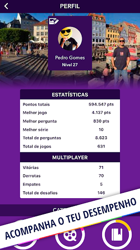 O Quizit mostra um conjunto de estatísticas para que você fique à par do seu desempenho no jogo e tente sempre melhorar seus máximos!