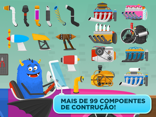 A criança pode criar qualquer modelo de carro usando várias partes diferentes.