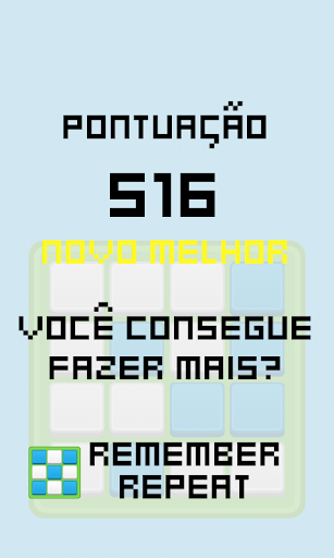 Remember Repeat é um quebra-cabeça onde você precisa Lembrar um padrão de blocos azuis e depois que eles desaparecerem você precisa Repetir esse padrão.