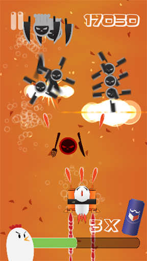 Rocket is the most reckless & dangerous chicken in the world. However his son “Nugget” has been kidnapped by Dr.Chick the Evil Chef. Help him get through the horde of Dr.chick minions by shooting sauce to enemies such as Chef, Shredder and Customer. If enemies are overwhelming using “Soda shot” as special attack to clear the screen. Collect items to upgrade Rocket. Ketchup make your attack stronger. Mayonnaise speed up your fire rate. Nugget healing Rocket’s wound.