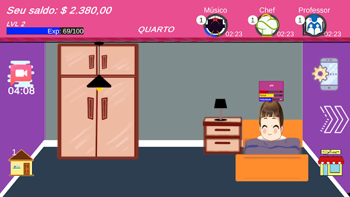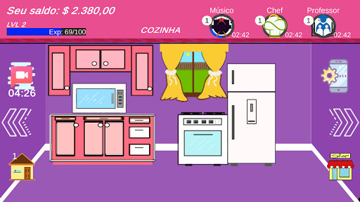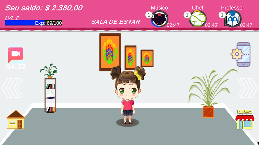 você cuida da sua boneca, compra móveis, sente fome e sono. Só não vai esquecer de deixar ela feliz hein ;)