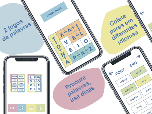 Qualquer combinação de idiomas. Quantos quebra-cabeças existem? Nem tente contar. Mais do que apenas uma tradução. A única língua é possível. A única língua em palavra para jogo de palavras - associações de palavras. A única língua em palavras no jogo da grade - as mesmas palavras. Idiomas diferentes - tradução ou associação próxima. Três níveis de dificuldade. Dificuldade de forma e dificuldade de conteúdo.
