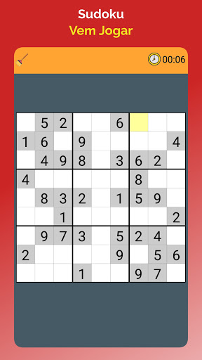 Sudoku é um quebra-cabeças que tem por objetivo a colocação de números de 1 a 9 em cada uma das células vazias, numa grade de 9x9 constituída por regiões de 3x3.