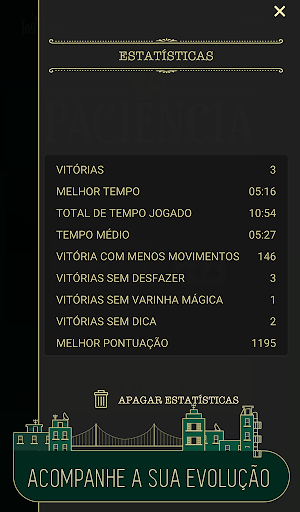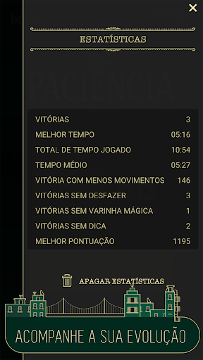 - Estatísticas, com o histórico das suas partidas, incluindo os melhores tempos e pontuações;