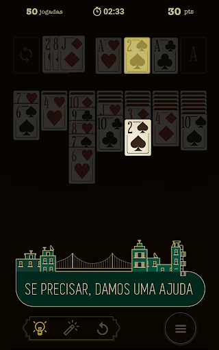 Modos Vira 1 e Vira 3: Escolha se prefere revelar apenas uma carta do baralho por vez ou 3 cartas por vez.