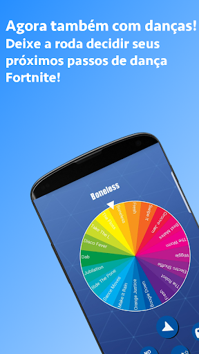 Use nossas roletas pré-definidas focadas na batalha Royale. Na próxima atualização, você também pode criar sua própria roda, por exemplo, relacionada ao lodo. agora nossas rodas predefinidas são relacionadas apenas a fortnite.