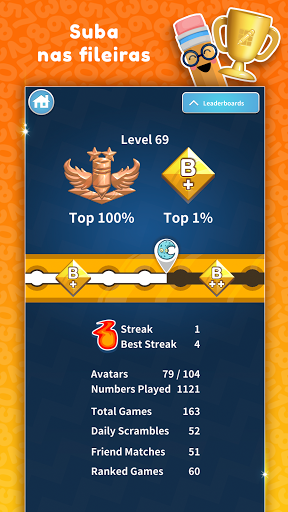 Este é o jogo mais divertido que você terá jogando Sudoku. Seja você um iniciante ou um ninja Sudoku, nosso sistema de jogo de partida garantirá que você obtenha os adversários competitivos corretos. Comunique-se com seus oponentes usando emoticons animados dentro do jogo. Mais de 100.000 variações de nossos quebra-cabeças de Sudoku feitos à mão. Quanto maior for sua classificação, mais desafiadores e difíceis serão os quebra-cabeças Sudoku e mais números você terá que jogar. Suba em nossas tabelas de liderança mundial e torne-se o campeão Sudoku Scramble.