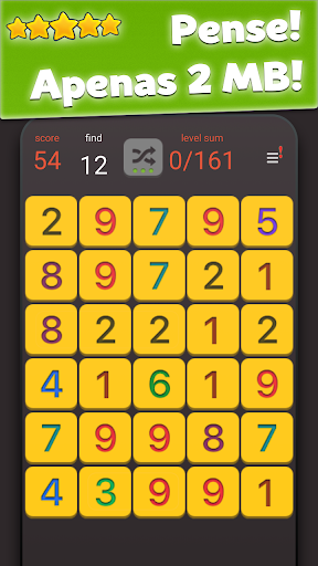 - Selecione números adjacentes em uma linha horizontal ou vertical que juntos são iguais à soma objetivo.