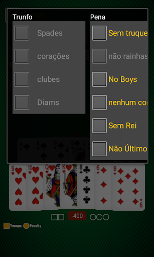 O objetivo deste jogo não é ganhar truques. O vencedor do truque é a carta mais alta do naipe jogado. Não há trunfo em jogos de penalização. Cada truque tem -50 ouros.