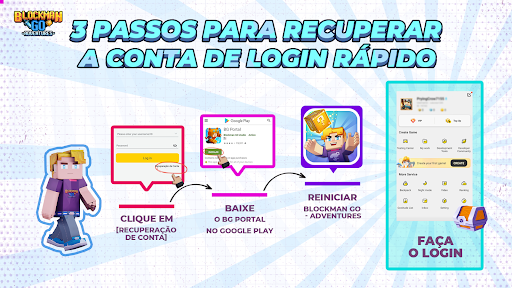Os jogadores devem instalar o BG Portal e o Blockman GO - Adventures no mesmo dispositivo em que jogavam usando as contas perdidas. Assim que o Blockman GO - Adventures for iniciado, o BG Portal irá recuperar as informações antigas da conta e fazer login automaticamente.