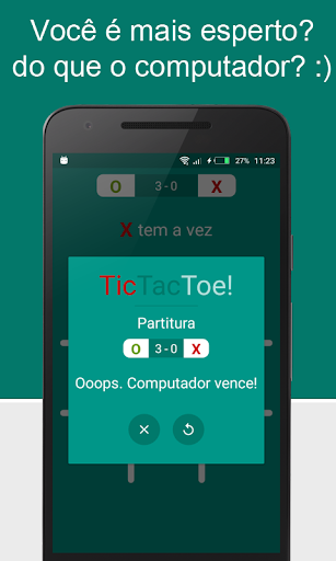 Você joga com o símbolo X e o computador com O.