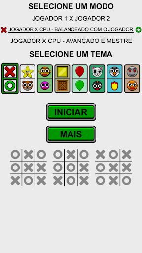 Você pode usar mais do que Xs e 0s do jogo da velha tradicional. Você pode jogar com esquilo vs estrela, gato vs bomba, pinguim vs fogo, balão vs balão, caixa vs bloco e outros itens do jogo Bomb Squirrel, incluindo um macaco.