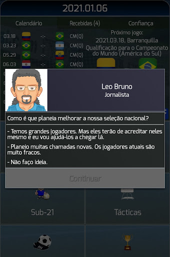 - Entrevistas com os jornalistas, as chamadas com os seus jogadores - todos a sua resposta afeta em sua moral e outros parâmetros. Tenha cuidado o que dizer!