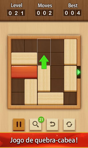 Mover para cima e para baixo ou direita e esquerda para desbloquear a madeira vermelha, então você ganha!