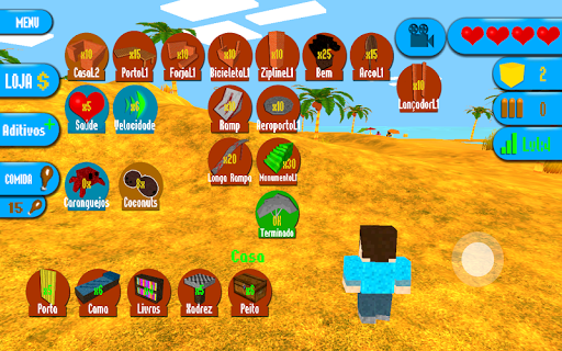 ▶ Você precisa de comida para sobreviver. Por exemplo, você pode comer caranguejos ou cocos.