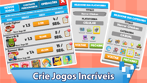 Comece como um desenvolvedor de jogos independente, trabalhando em jogos para PC, consoles e celular e progrida aos poucos, contratando mais pessoas e lidando com mais operações no gerenciamento da empresa. Este é o jogo perfeito para todo mundo que se interessa pelo desenvolvimento de games e quer criar seus próprios jogos, ou aqueles que querem se tornar magnatas da indústria de desenvolvimento de jogos e criar os melhores games de simulação da história. Você pode criar os seus próprios jogos, isso não é o máximo? Você pode gerir o seu próprio império de Vídeo Game, melhor do que ser um youtuber.