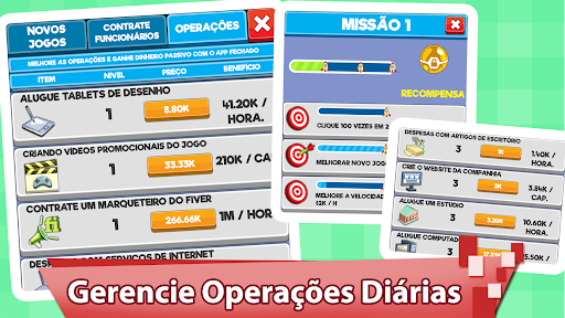 Gerencie um negócio de jogos realista e ganhe uma boa grana. Este simulador de clicar é a sua chance de criar uma Empresa de Desenvolvimento de Vídeo Games passiva. GAMEPLAY DE CLICAR/TOCAR/PASSIVO SUPER CASUAL. É só tocar na tela. A história perfeita do magnata do desenvolvimento de jogos! Torne-se um verdadeiro criador de jogos de PC, consoles e celular, seja o líder do mercado e construa um império neste divertido simulador tycoon passivo, divertido e viciante.