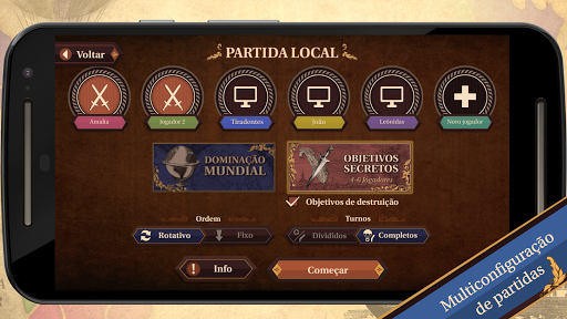 2 MODOS DE JOGO: combata pelo DOMÍNIO DO MUNDO ou tente ser o primeiro a cumprir o seu OBJETIVO SECRETO.