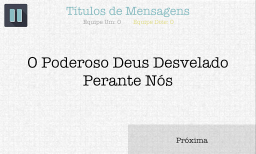 Você tem o que é preciso para levar sua equipe à vitória no "Que Palavra"? Reúna a família e amigos para horas de diversão com este jogo de trívia em ritmo acelerado. Todas as idades vão se divertir com as categorias como Personagens Bíblicos, Sete Selos, Títulos de Mensagens, Still Waters, e muitas mais! Tudo o que você precisa é de dois ou mais jogadores dispostos a adivinhar milhares de palavras e frases tiradas diretamente da Bíblia e da Mensagem do irmão William Branham.