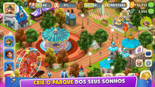 GESTÃO DO PARQUE: Vire um MAGNATA DOS PARQUES DE DIVERSÃO! Colecione, crie e venda itens para manter seu parque maravilhoso e feliz. Tenha o máximo possível de VISITANTES e preencha seu MEDIDOR DE FELICIDADE!