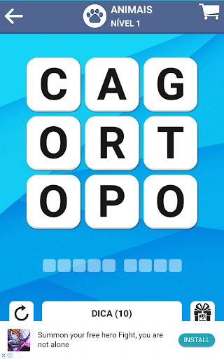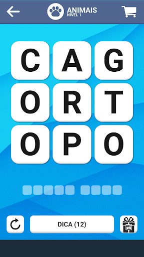 No jogo de palavras, seu objetivo é encontrar palavras secretas em um quebra-cabeça de palavras.