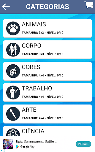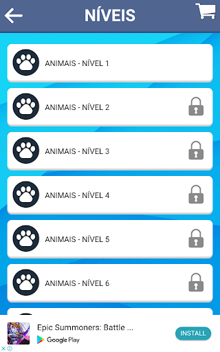 Existem muitos níveis com diferentes categorias, como: