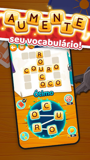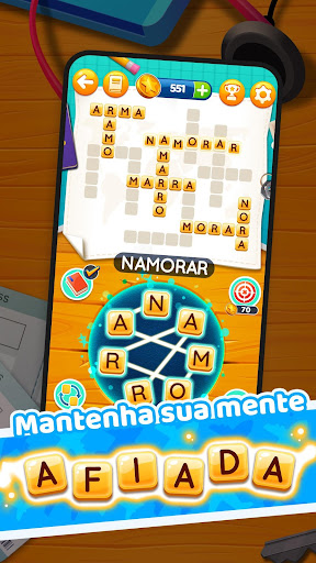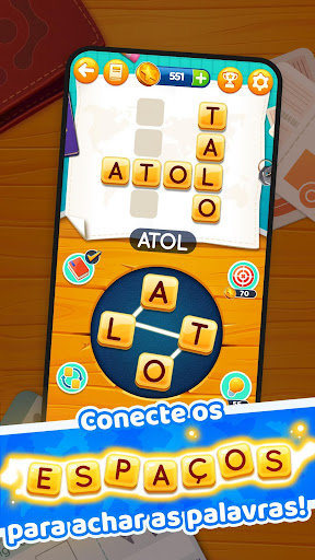 Em cada nível, você terá uma roda com letras. Arraste o dedo sobre as letras para soletrar uma palavra. Cada palavra que você encontrar será parte de uma palavra cruzada ou será uma Palavra Oculta, gerando moedas extras! Complete as palavras cruzadas para passar para o próximo nível.