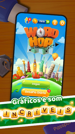 Faça uma viagem ao redor do mundo no Word Hop, um novo e emocionante jogo de palavras cruzadas!