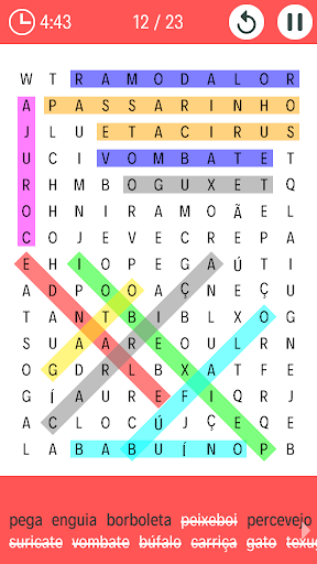 Caça Palavras é uma adaptação para mobile do clássico jogo de achar palavras. Escolha uma dificuldade, uma categoria e tente achar as palavras escondidas!