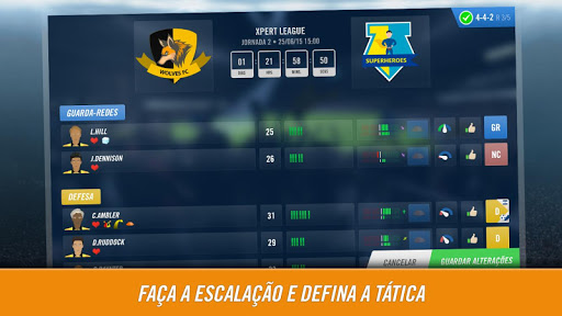 - Você é responsável pela tomada de decisões antes dos jogos. Escolha quais os jogadores com que deseja começar e as respectivas posições e tente superar seu oponente quando definir a tática.