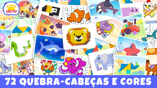 Além dos clássicos quebra-cabeças e cores, estão presentes dois novos tipos de jogo: cor pixel e quebra-cabeça Tangram, com muitos animais para descobrir.