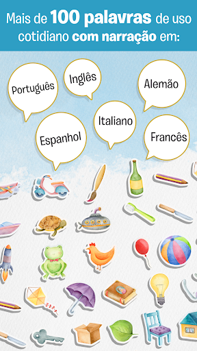 As crianças aprenderão novas palavras associando as ilustrações fofas feitas à mão em aquarela com a sua pronúncia correta em Inglês, Espanhol, Francês, Italiano e Alemão e Português do Brasil. Você pode trocar o idioma quando quiser para brincar em outras línguas.