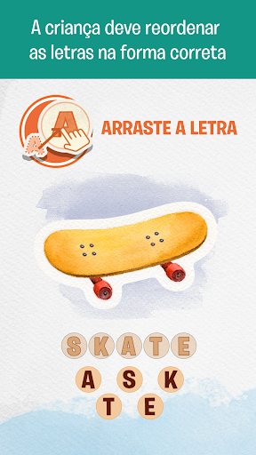 💟 Arraste a letra: áudio e as letras usadas para montar a palavra. A criança deve reordenar as letras na forma correta.