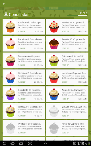 Em Cupcake Tris você pode desbloquear novas receitas de Cupcakes e pontuar para destravar recompensas. Tente estar no topo do quadro de pontuação!