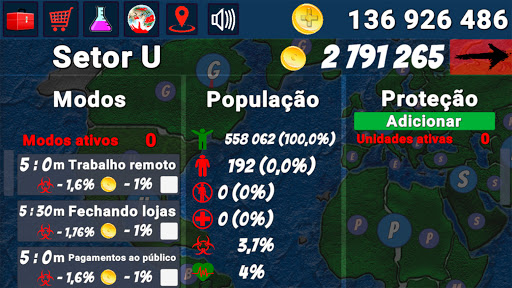 O Mundo foi dominado por um vírus. Salve este Mundo desenvolvendo as Táticas de Jogo corretas, forneça aos Setores meios de proteção, medicamentos e introduza as restrições necessárias. Só você pode salvar este Mundo.