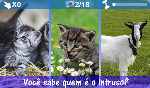 Neste jogo de reflexão, basta tocar no intruso entre as três imagens propostas.