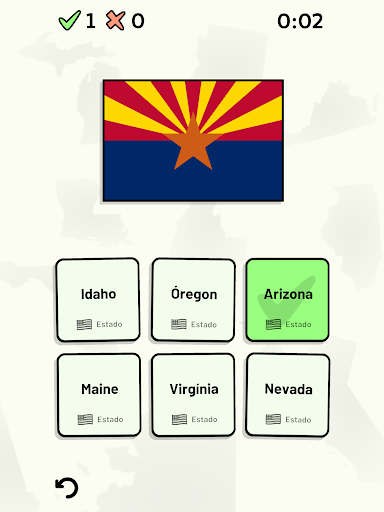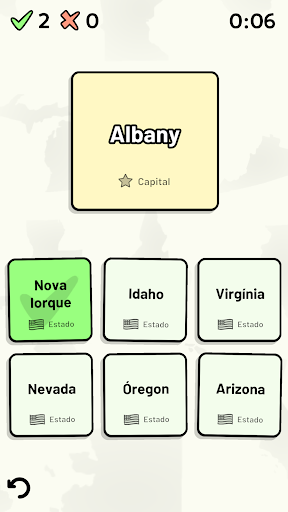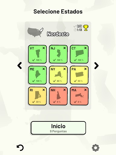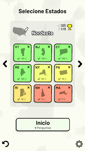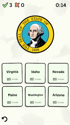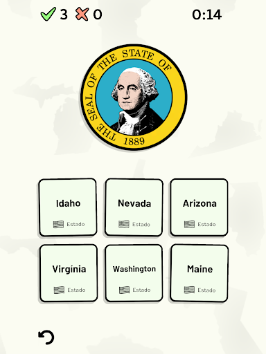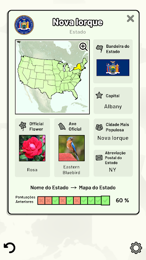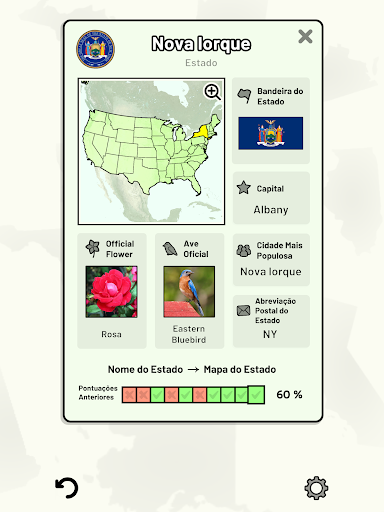 Este jogo abrange 8 tópicos sobre os 50 estados dos Estados Unidos da América: