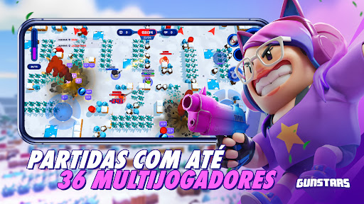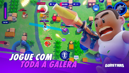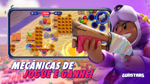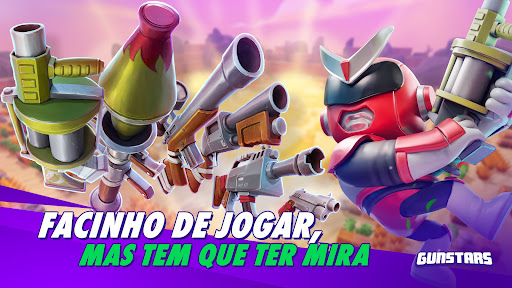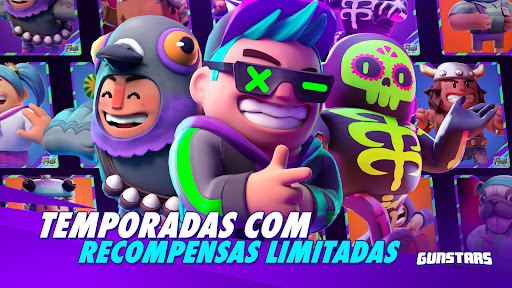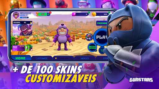 Um Battle-Royale multijogador feito para mobile! Jogue solo ou convide amigos e viva experiências épicas dentro das arenas de batalha do universo de Gunstars.