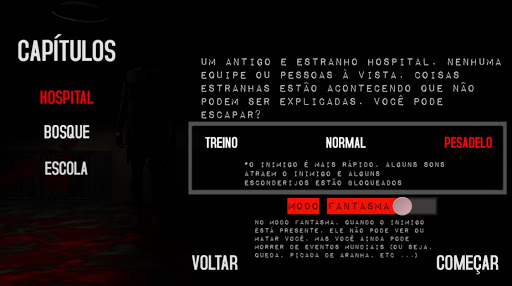 O Hospital - O primeiro e mais longo capítulo que você tem! Com uma atmosfera sombria e assustadora, você tem que caçar pistas e tentar sair do pesadelo.